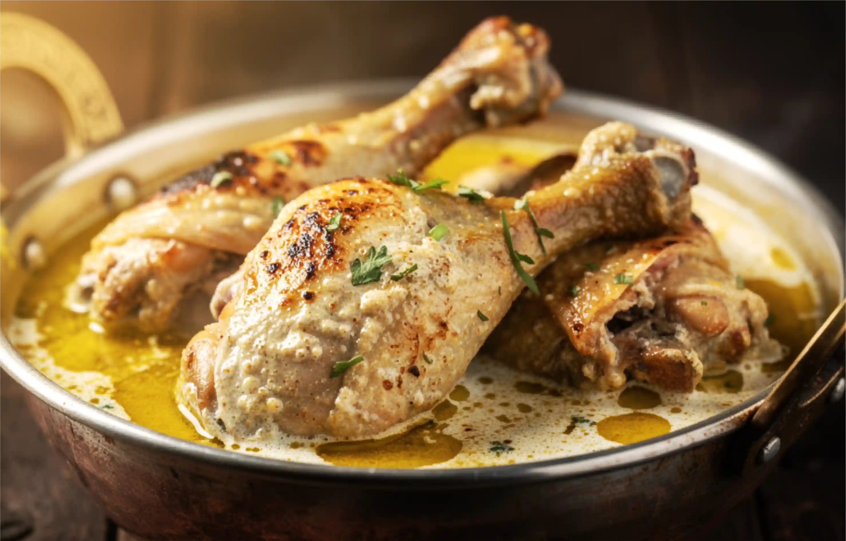 Chicken Barra is another delicate dish made of soft chicken pieces. It is marinated in yogurt, cream, ginger and other spices. The recipe is cooked on a slow tandoor flame, which provides a smoky and slightly charred flavor to the dish. The dish is served with fresh mint chutney.