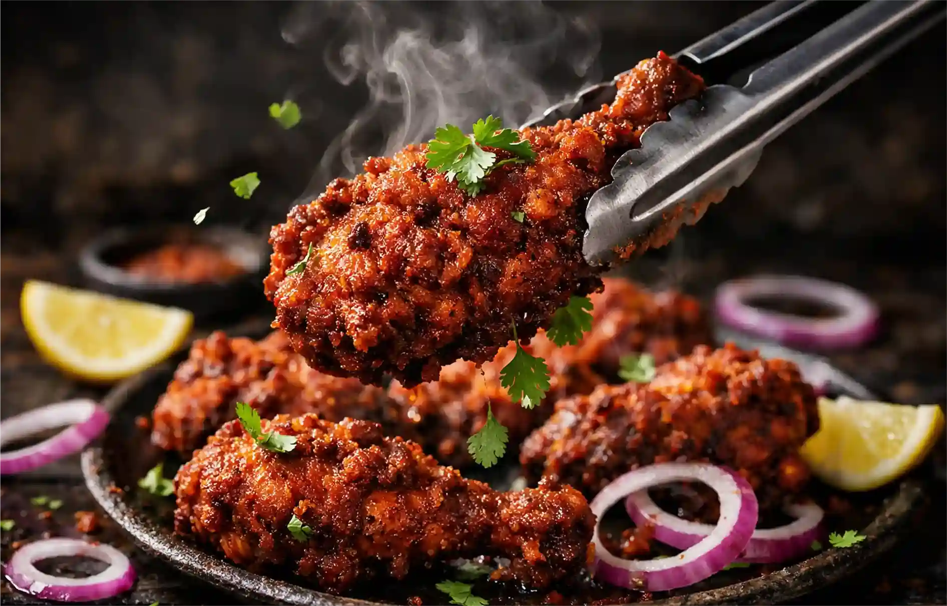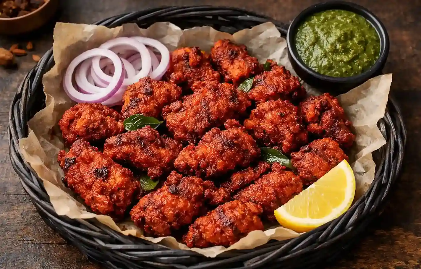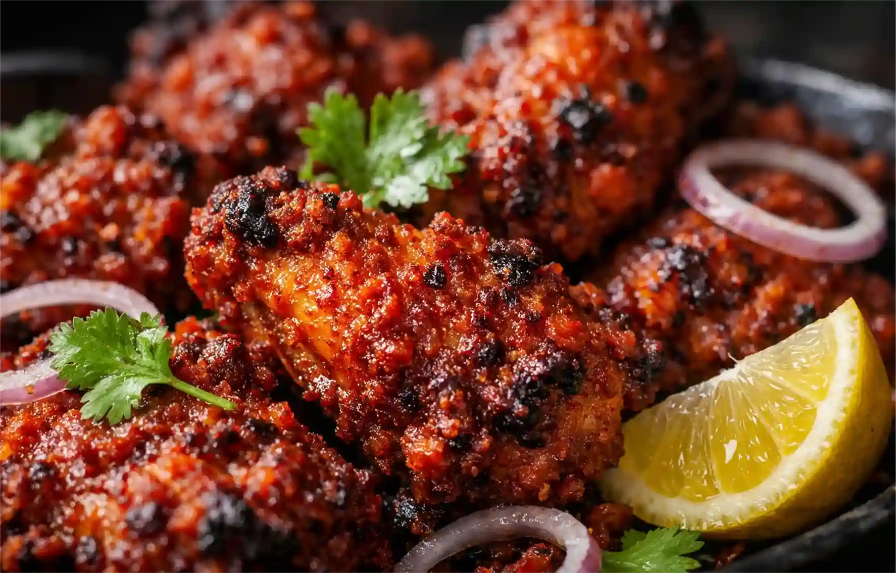 Chicken Fry is a delicious, crunchy dish, it is cooked with tender, juicy chicken pieces. The chicken is soaked with several spices for three to four hours . It is generally fried twice and served with chutney and onion. The outside gets golden and crunchy, and the inside remains soft, making it a perfect starter item.