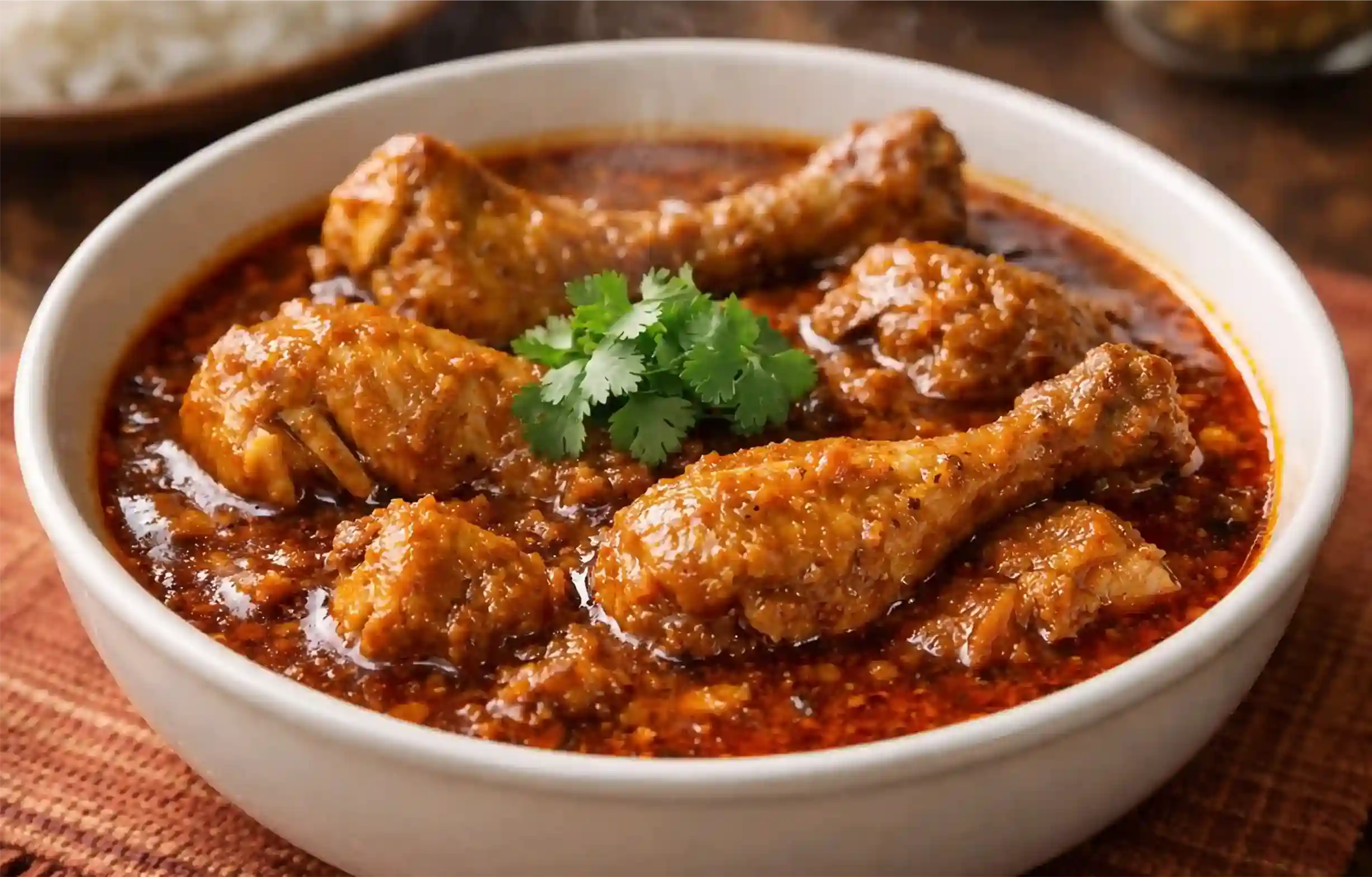 Chicken Korma, an Indian recipe cooked slowly in yogurt and cream. In its preparation, whole garam masalas are used along with ghee. All these spices are cooked with tender chicken that brings a rich aroma. Its texture is smooth and mildly sweet. The dish is served on all occasions. Best enjoyed with naan, rumali roti, or basmati rice.