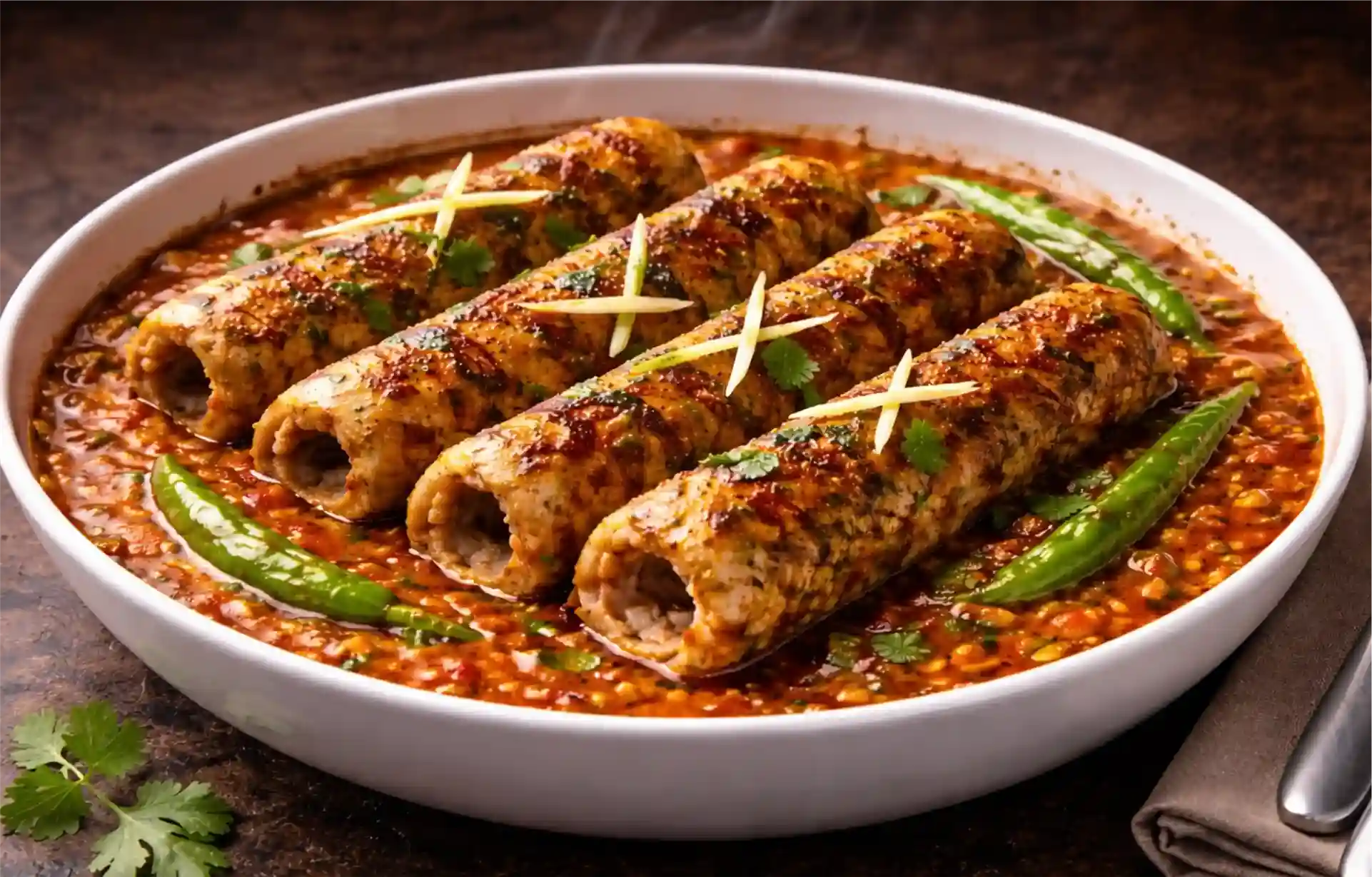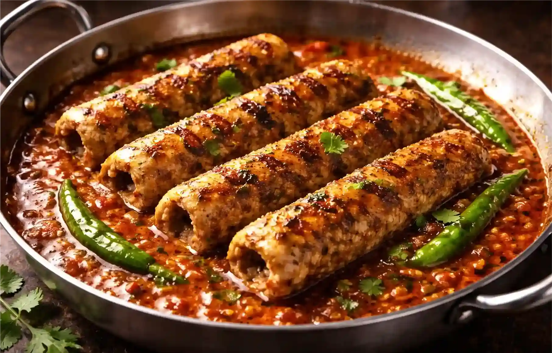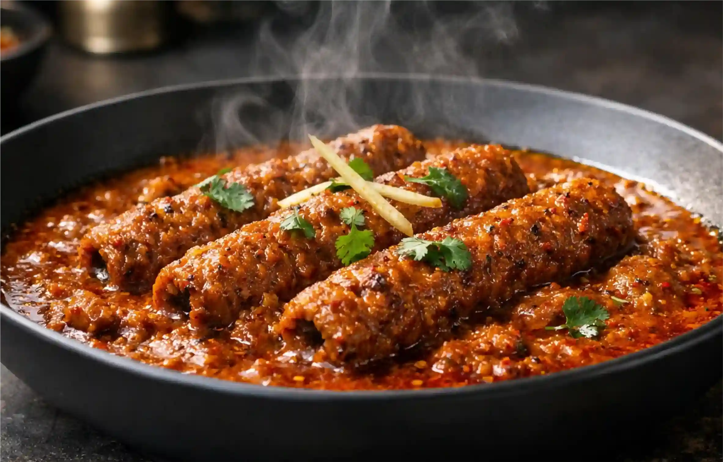 Chicken Seekh Kabab Gravy is a delicious dish. This recipe is commonly served at marriages and parties and it is liked by all alike. Several classical spices are added to the minced chicken. To get a smoky flavor, it is cooked in a tandoor. For making gravy, butter and cream are poured on it. The dish is often consumed with naan, roti, or rice.
