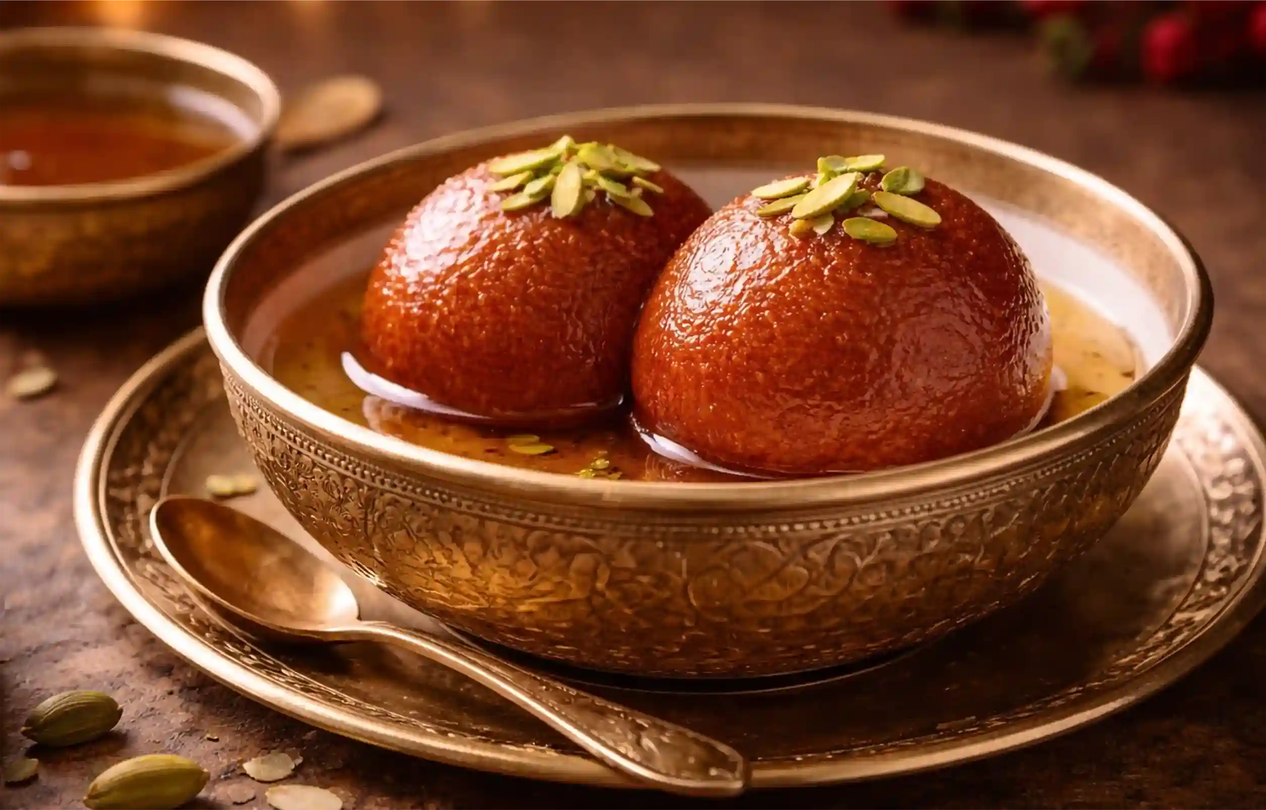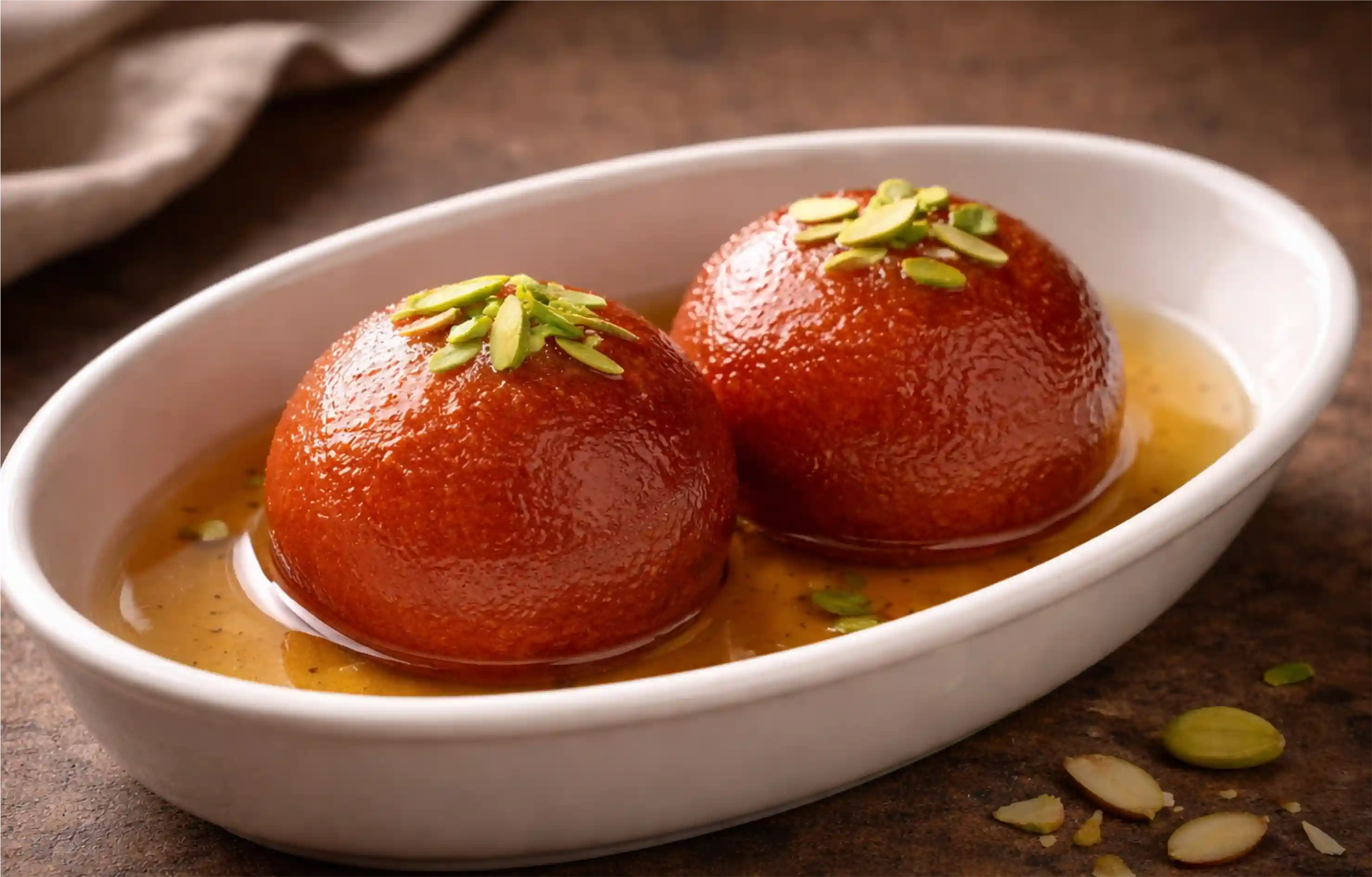 Shahi Sufra’s Gulab Jamun is soft and prepared from milk and khoya. It is first deep fried in ghee then put in sugar syrup.