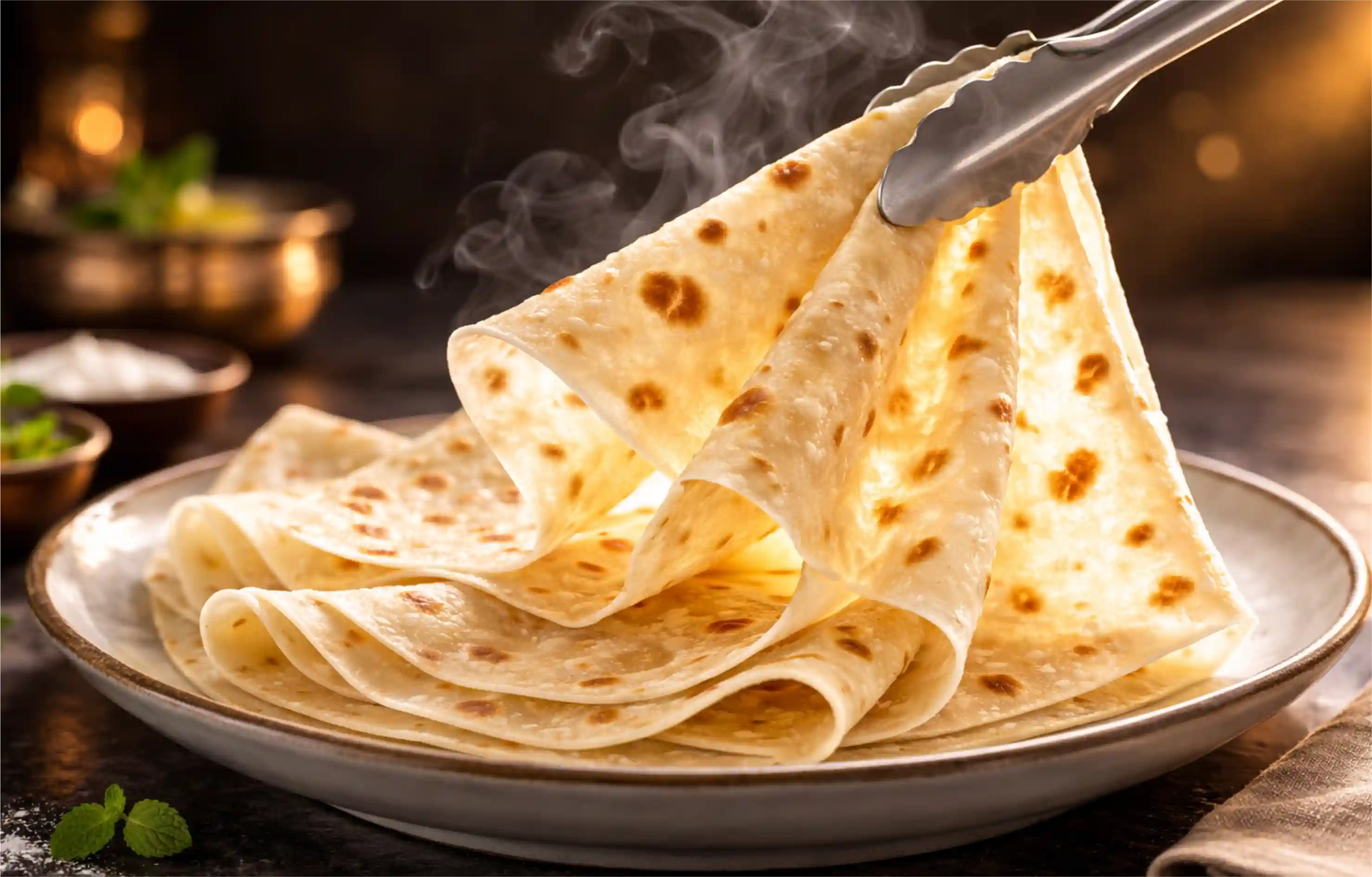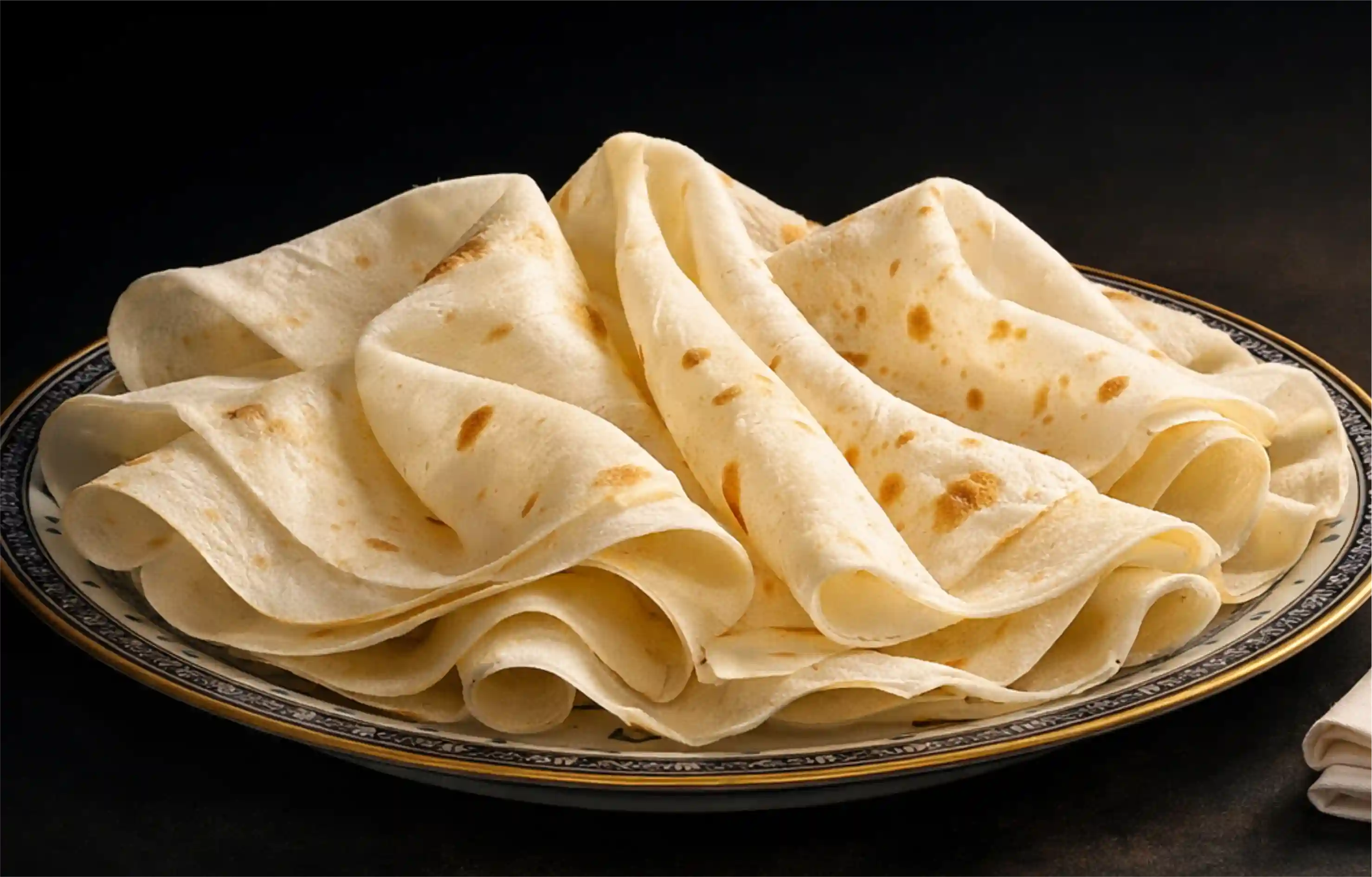 Rumali Roti is a thin flatbread. It is light and can be folded easily like a handkerchief. Refined flour is used in its preparation. First, the dough is prepared. The experts then cooked on a hot curved pan. It is an ideal combination with kebabs and heavy curries. Rumali Roti is served on all occasions.