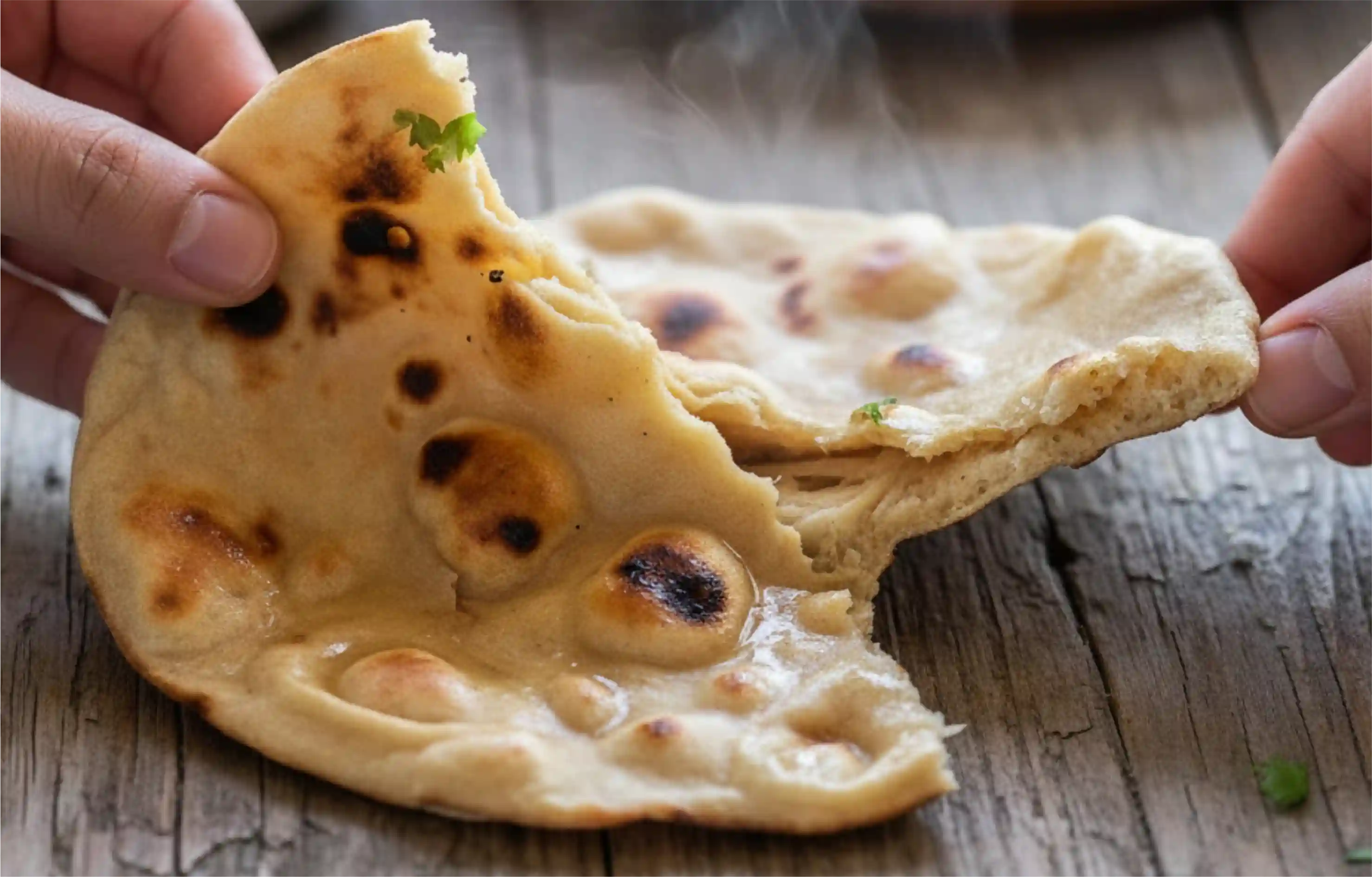 Tandoori Roti is a delicious roti prepared from flour. Water and salt are added to it during the making of the dough. It is baked on the hot walls of a burning tandoor. It becomes slightly crispy and soft, making it a perfect combination with different curries.